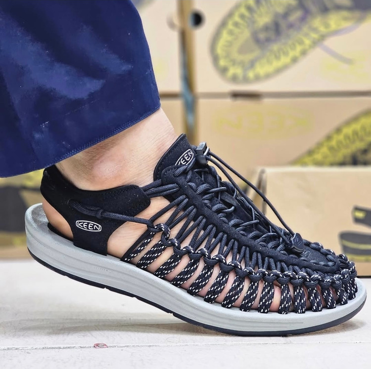 این صندل از برند KEEN و مدل آن KEEN UNEEK است. این مدل به دلیل طراحی خاص با بندهای طنابی معروف است که هم راحتی و هم تهویهی خوبی را فراهم میکند. ویژگیهای اصلی این صندل: