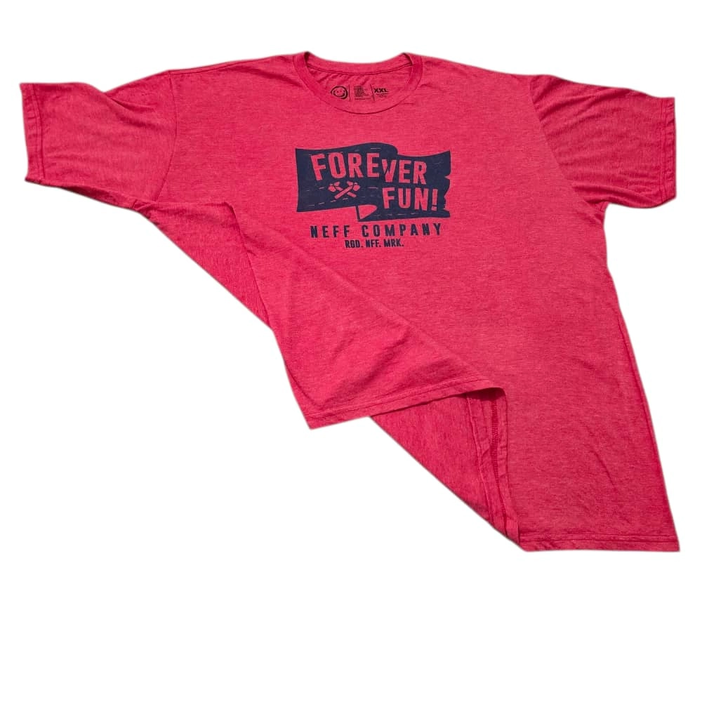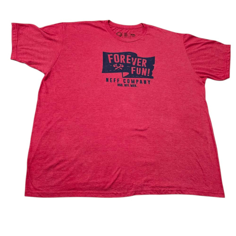 * طرح: طرح گرافیکی "FOREVER FUN!" با رنگ سرمهای یا مشکی تیره در قسمت سینه چاپ شده که شامل یک تصویر چکش و یک پنجه حیوان (احتمالاً سمور یا موش) نیز میشود. زیر آن نیز لوگو و عبارت "NEFF COMPANY" و "RGD. NEFF. MRK." دیده میشود.