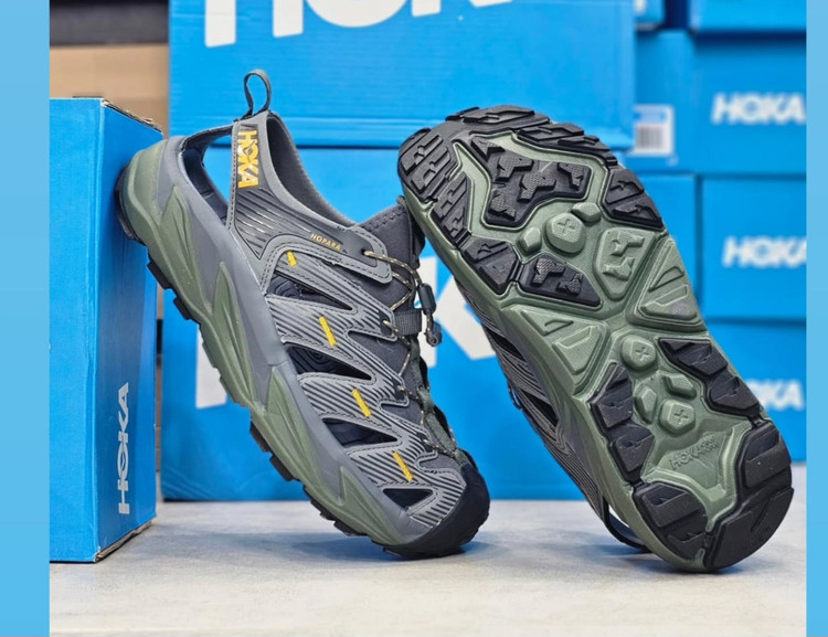 مدل «HOKA Hopara» از برند هوکا (HOKA ONE ONE) است. این مدل ترکیبی از ویژگیهای کفش پیادهروی و صندل است و برای طبیعتگردی، کوهنوردی سبک و مسیرهای مرطوب طراحی شده است.