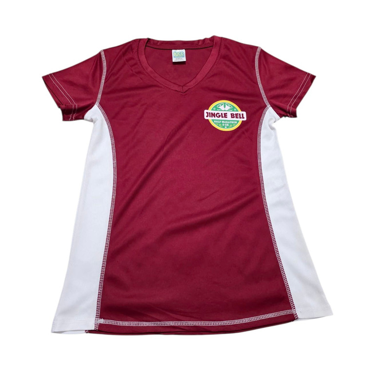 این یک تیشرت به رنگ زرشکی است. این تیشرت آستین کوتاه و یقه ۷ می باشد از جنس پلی استر می باشد.