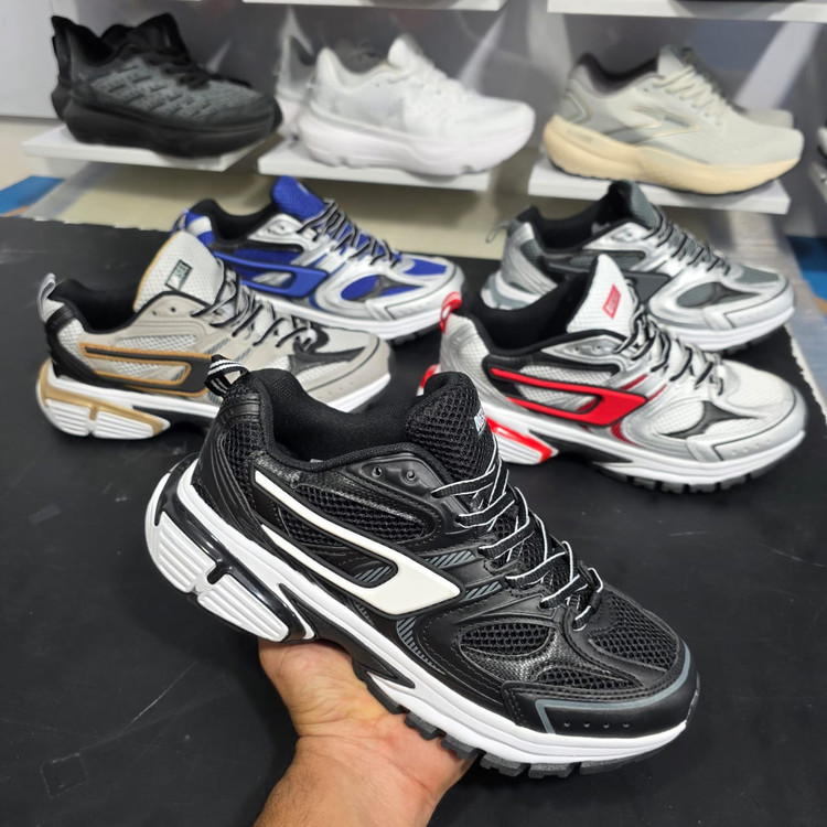 رویهی این کفش از متریال ترکیبی شامل پارچه مش و چرم مصنوعی ساخته شده که تهویه مناسب و دوام بالا را به همراه دارد. زیرهی ضخیم و لایهلایه آن نهتنها طراحی جذابی دارد، بلکه باعث جذب ضربه در هنگام راه رفتن نیز میشود. از طرفی، ساختار ارگونومیک آن به گونهای طراحی شده که فیت مناسبی برای پا ایجاد کند و در استفادههای طولانیمدت، از خستگی پا جلوگیری کند.